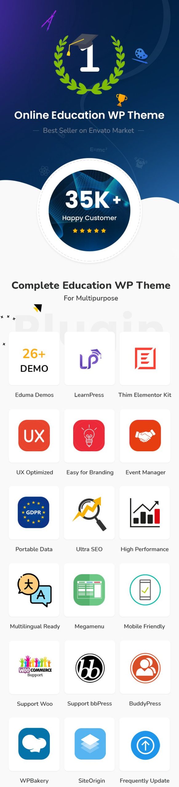 Eduma is made for Education Website, Online LMS, Online Course Website, Online Learning Platform, Course Hub, Online School, University, ect.